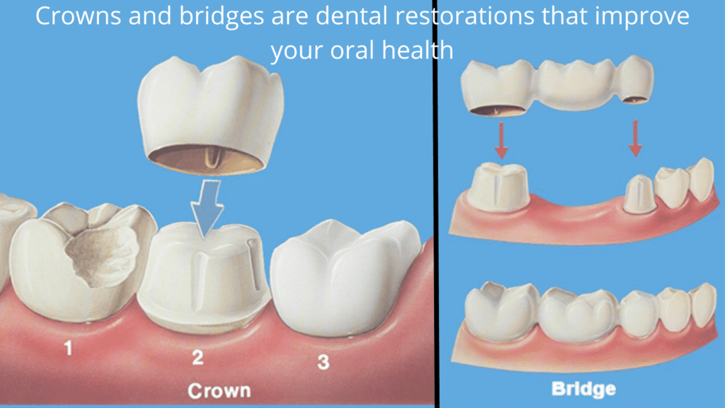 What are the benefits of having dental crowns and bridges placed in your mouth, and how will they improve your oral health?
